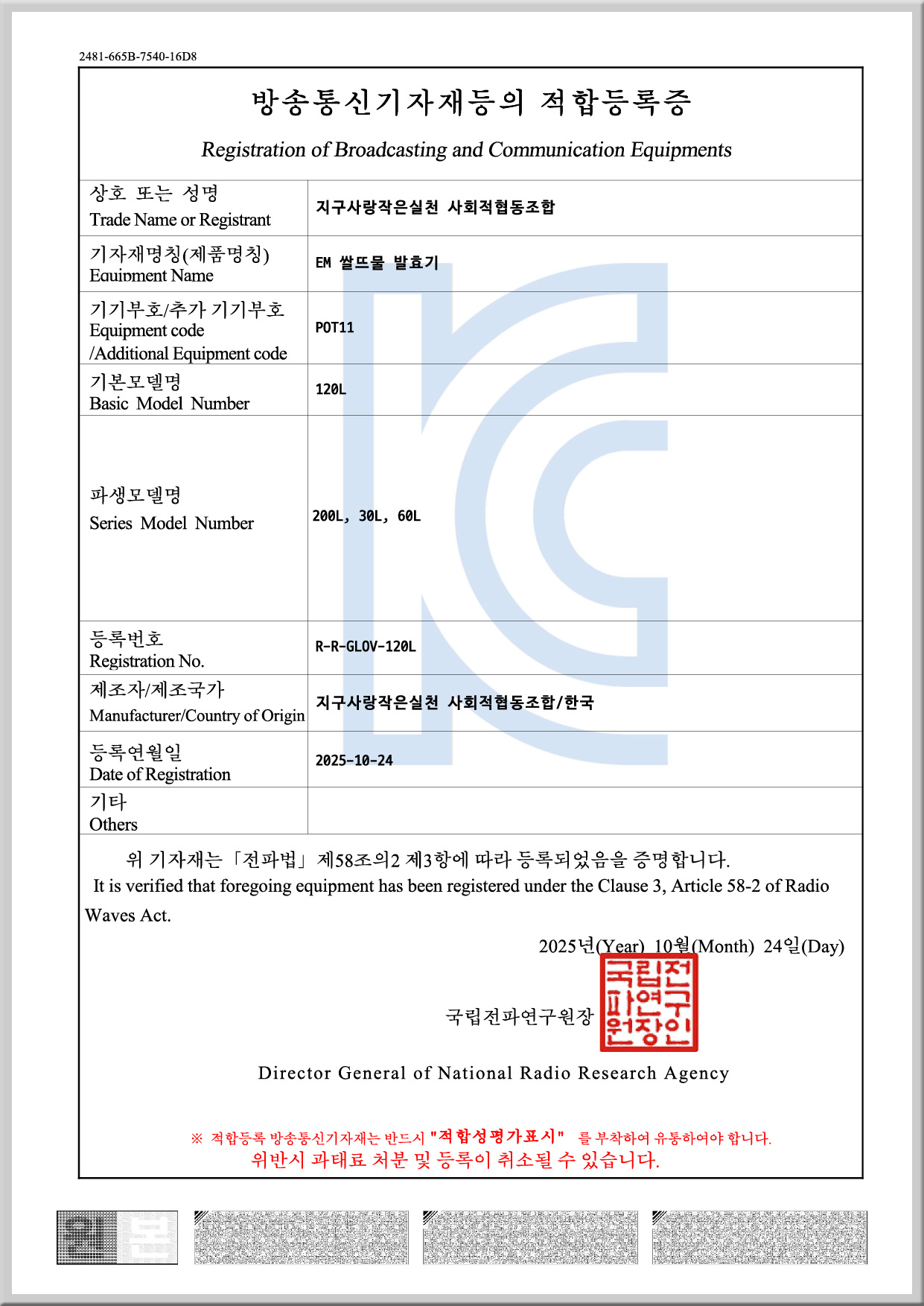 - 신규 소식 : EM 쌀뜨물 발효액이 올해 환경부 생활화학제품(탈취제)으로 정식 신고되어,
