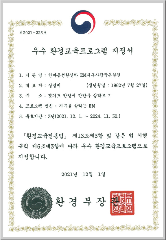 - 내용 : 기후위기 인식 개선 교육 + EM 쌀뜨물 발효기 무료 보급 및 설치